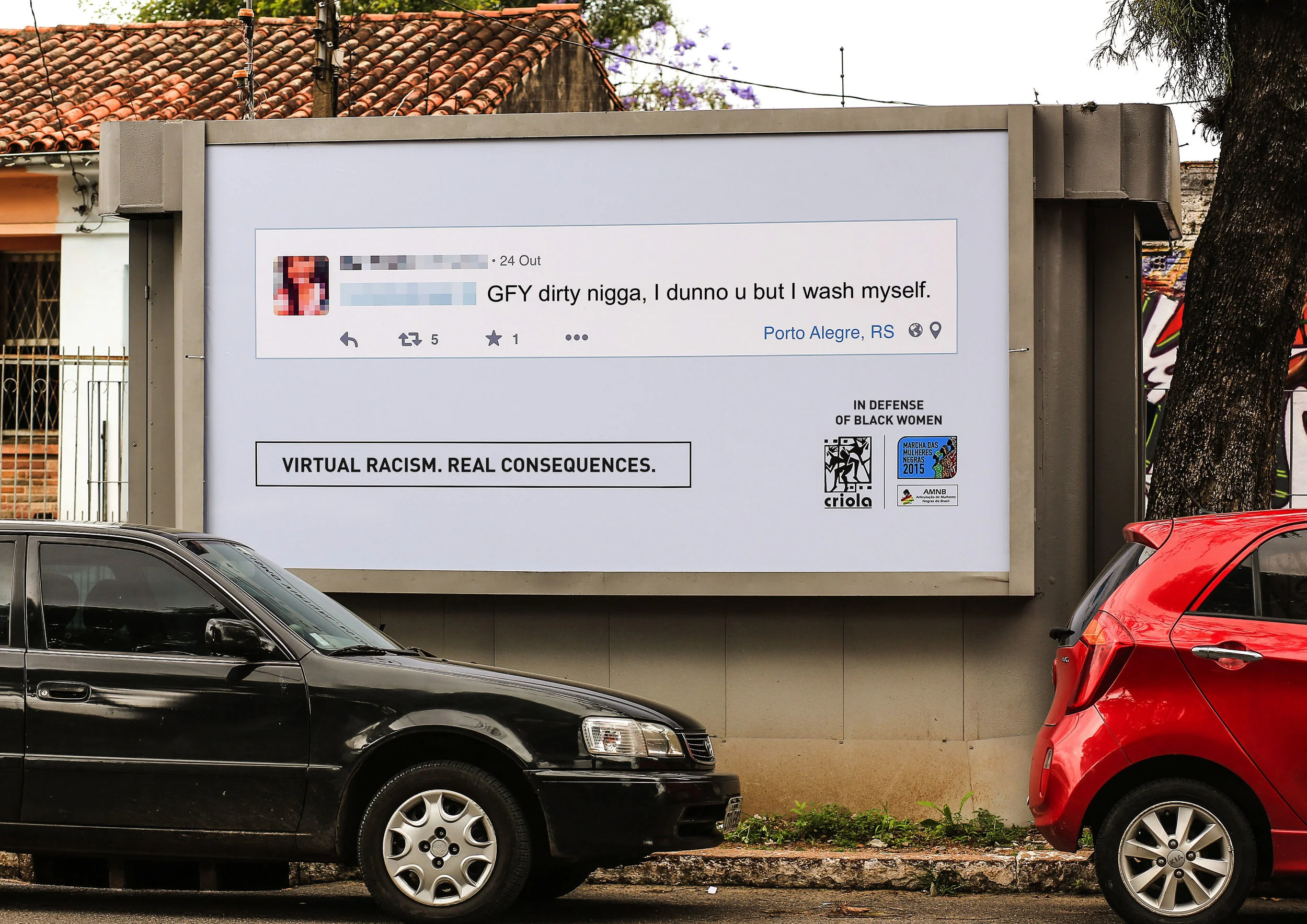 On July 3rd, 2015, Maria Julia Coutinho, the first black weather presenter on a major Brazilian newscast, received several racist comments on Facebook. We tracked the racist individuals and printed their comments on billboards near their houses and geolocated ads.